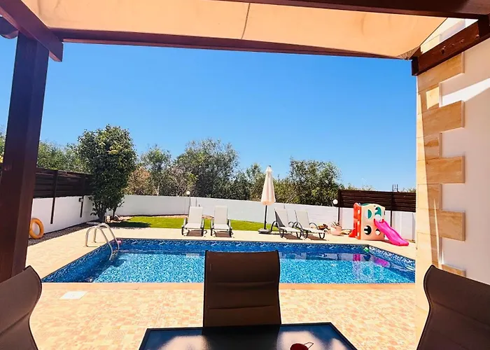 Βρίσκεται σε απόσταση 10 λεπτών με τα πόδια από τη στάση λεωφορείου Makronissos Beach 1. Η βίλα έχει βεράντα με θέα στην πισίνα. Μετά από μια μέρα εξερεύνησης της Αγίας Νάπας και των αξιοθέατων της πόλης, μπορείτε να κάνετε μια δροσιστική βουτιά μέσα σε ιδιωτική πισίνα στην Villa Pavlina.